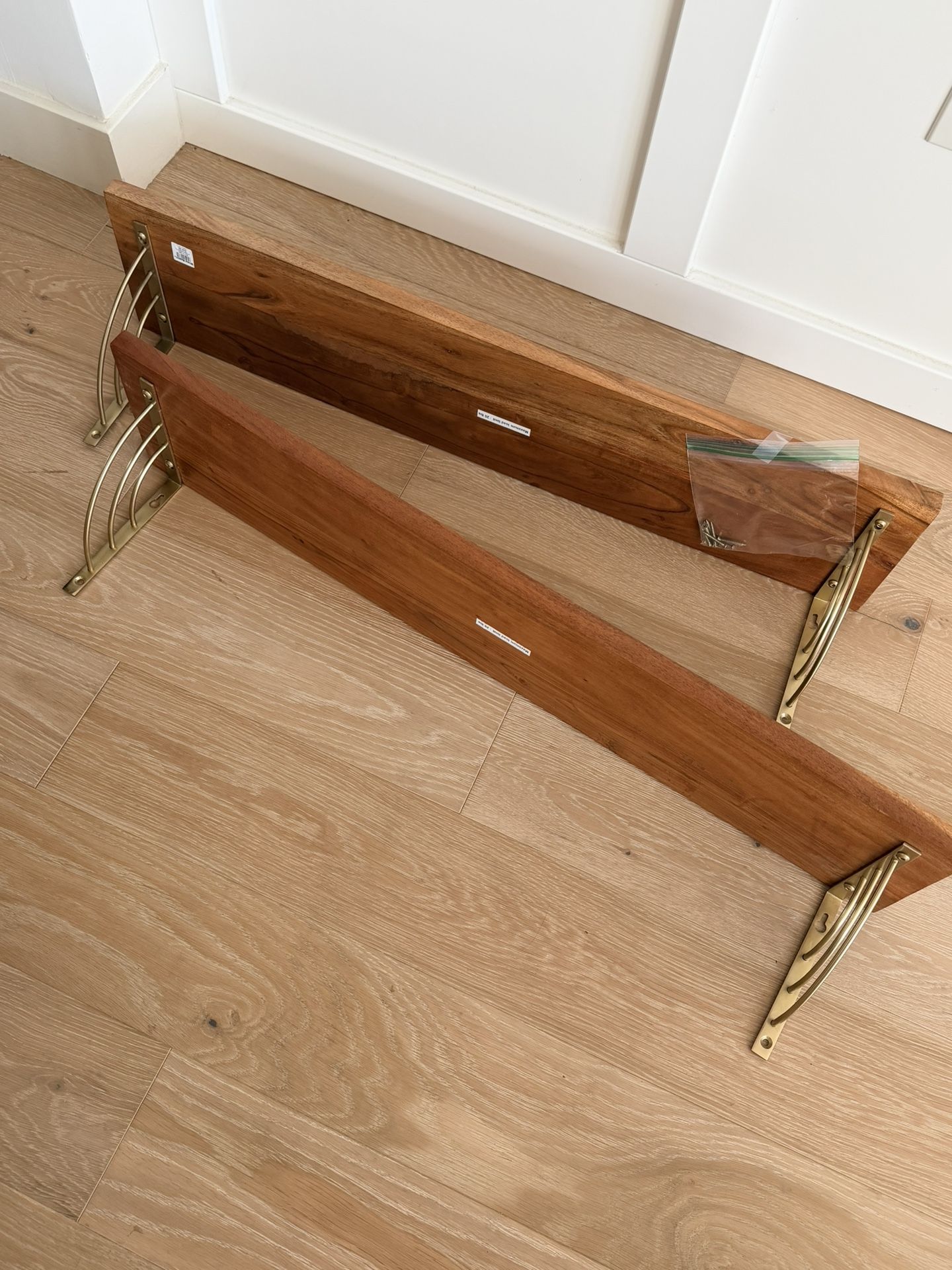 3ft long Gold and brown / wood shelves from World Market. Set of two for $25.