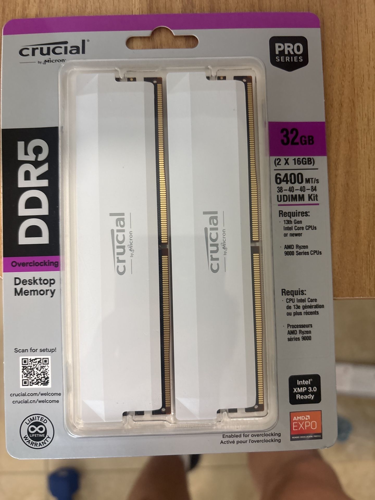 Crucial Pro DDR5 RAM 32GB Kit (2x16GB) 6400MHz CL38, Overclocking Desktop Gaming Memory, Intel XMP 3.0 & AMD Expo Compatible – White CP2K16G64C38U5W