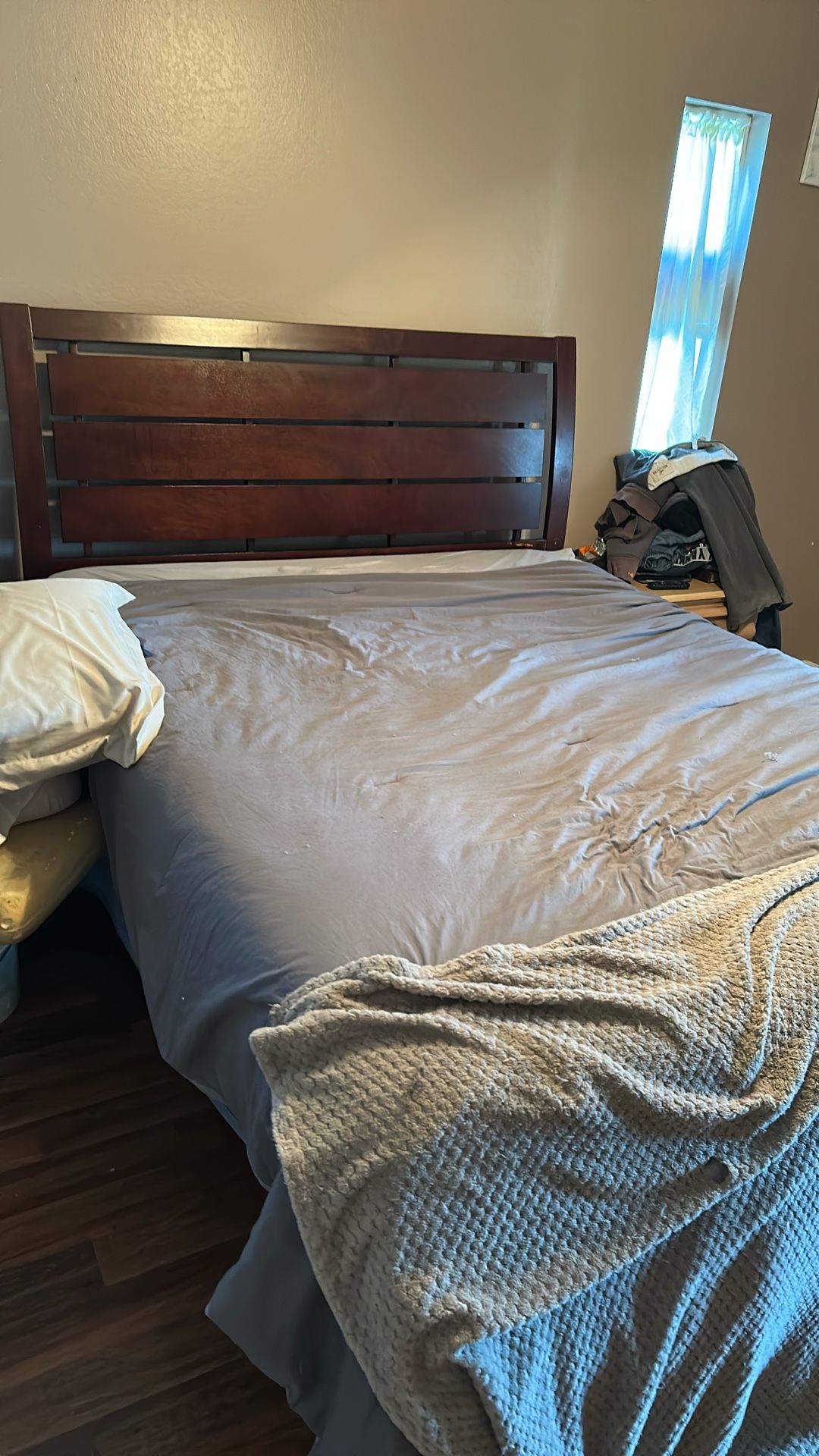 Queen size bed with head board box spring frame n mattress