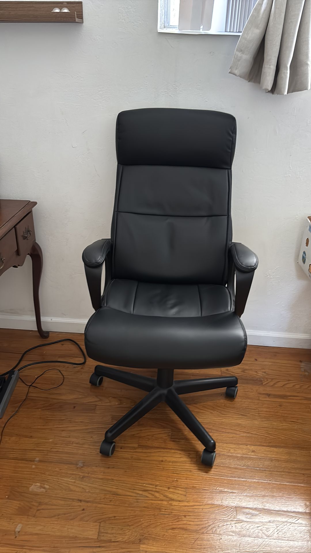 Rolling office chair with rubber castors for quiet movement… cushioned, comfortable…in good condition.