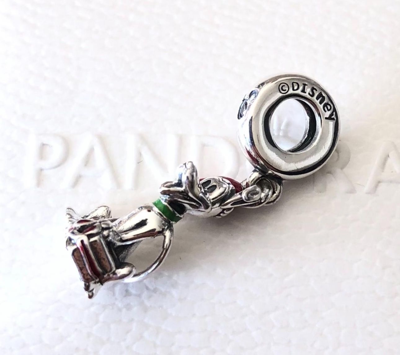 Pandora Disney's Pluto Christmas, Dangle Charm, Enamel & Cubic Zirconia #799199C01 + FREE Pandora Gift Box + Tag