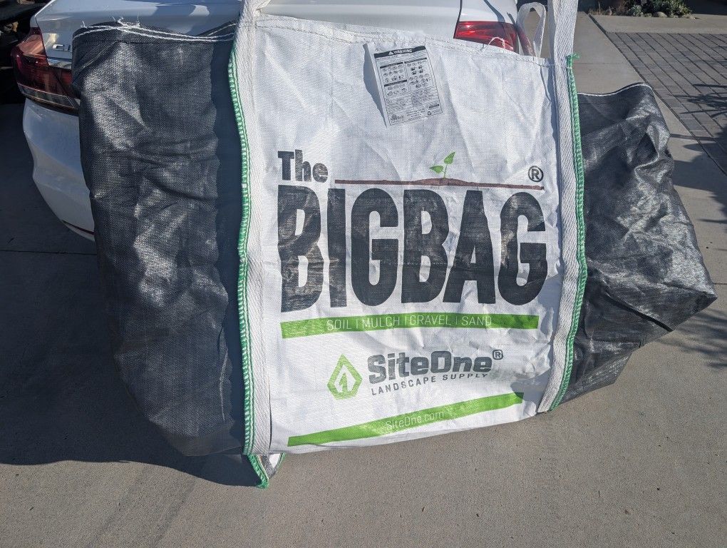 Super Sack used once. Roomy and tall. Dimensions in photo. Located in Mira Mesa. Made of a very strong synthetic material. Used for Decomposed Granite, but could easily be used for sand, or mulch, lots of other uses.