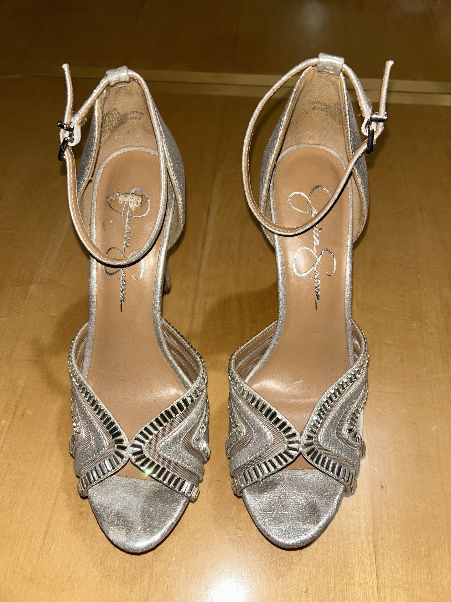 Jessica Simpson Silver/Rhinestone heels Women’s size 8 5 1/4 inch heel 1 1/4 inch platform
