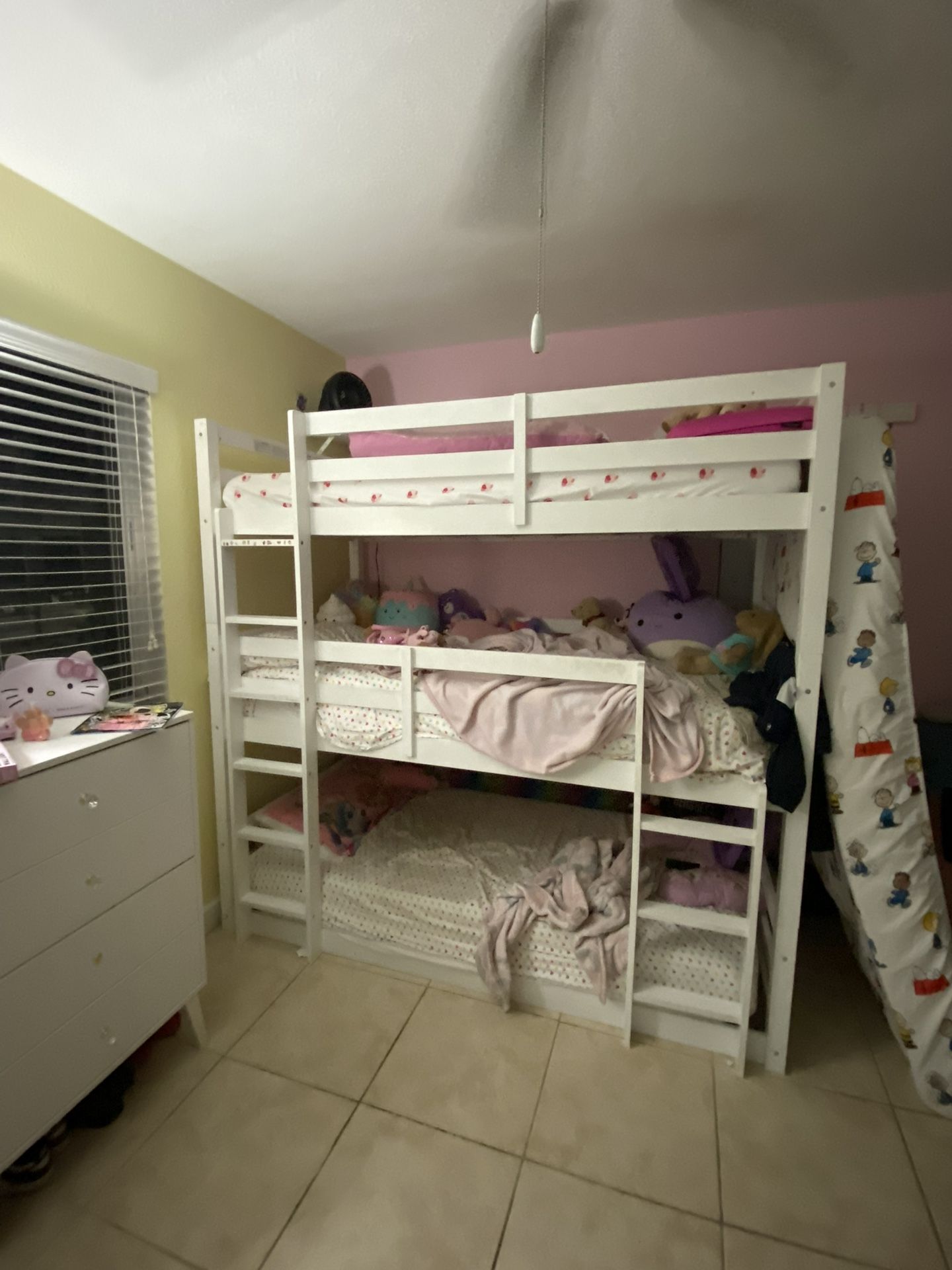 In good shape and all the parts and screws included , mattresses not included and dismantled already for easy pickup , need it gone asap