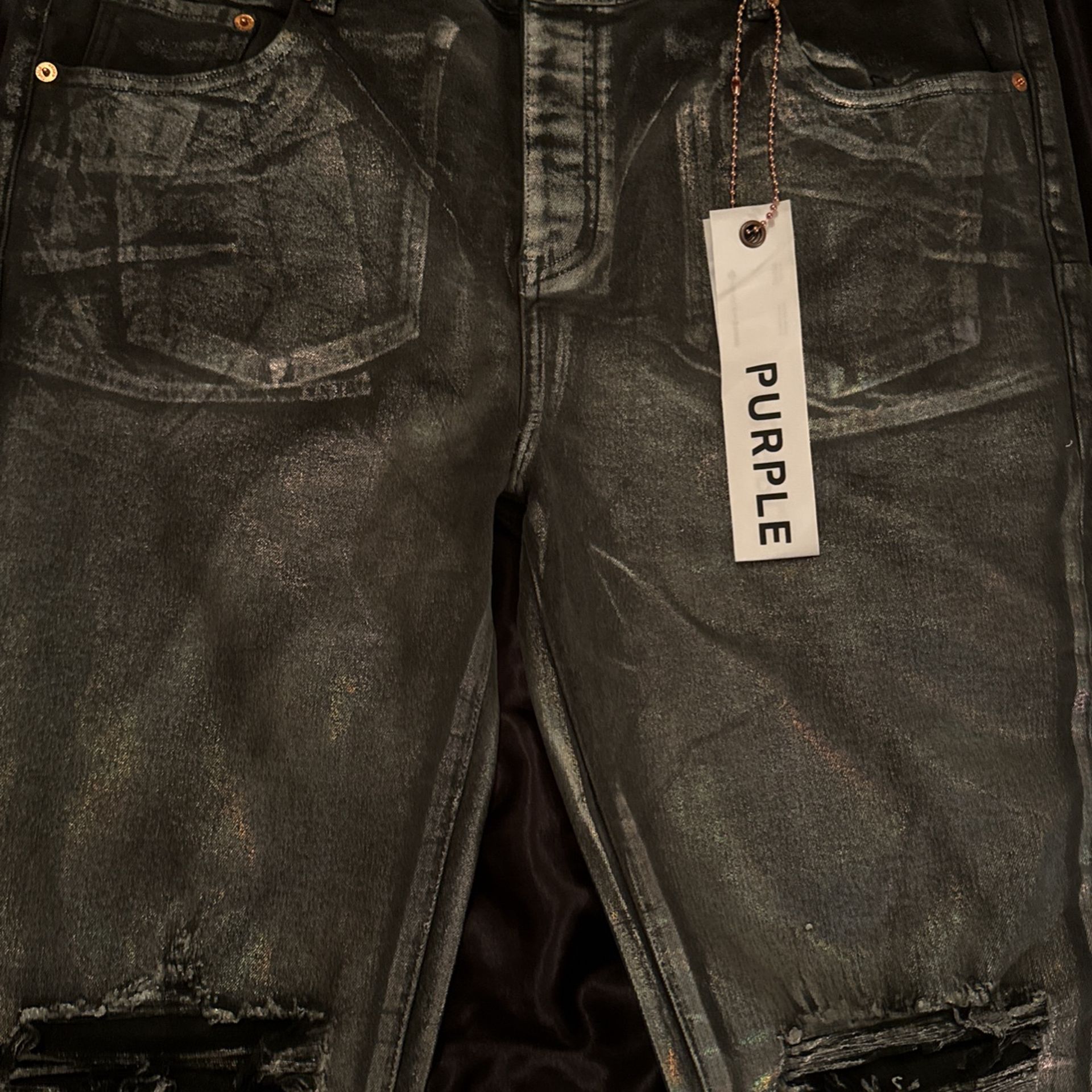 BRAND NEW NEVER WORN. Jeans are a gray color with a shiny look. Got it as a gift however i do not like the style therefore i want to sell it