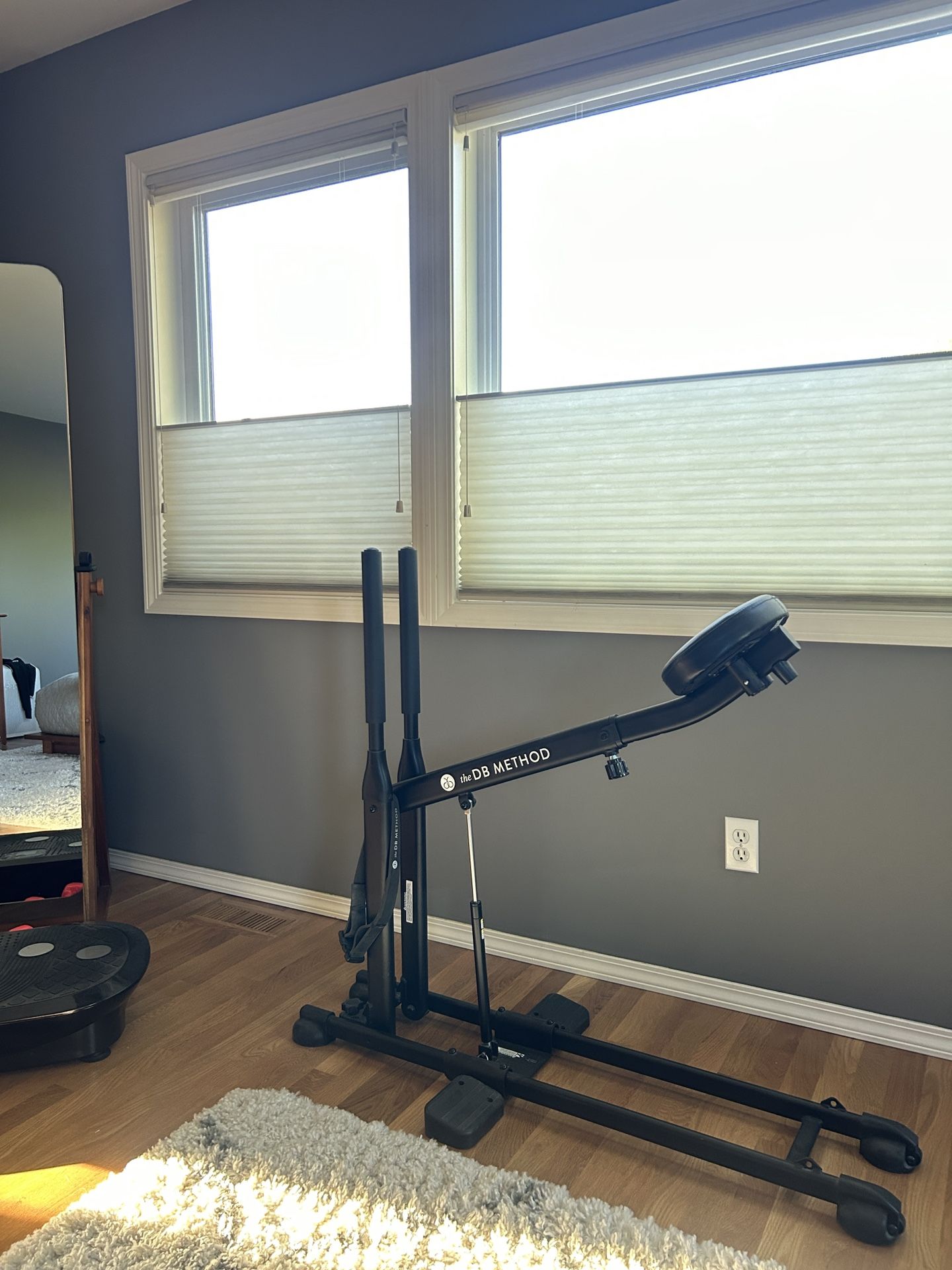 DB Method Squat Machine Dimensions: 45 1/2" x 20" x 39 1/2" Machine Weight: 29 1/2 lbs Assembly: No-tools Assembly Extendable Seat for Heights: 5'0"-6'3" Maximum User Weight: 275 lbs Folded Height: 7’’ at highest point Barely used and cones with additional accessory band. Machine is $289.99 on the DB Method website!