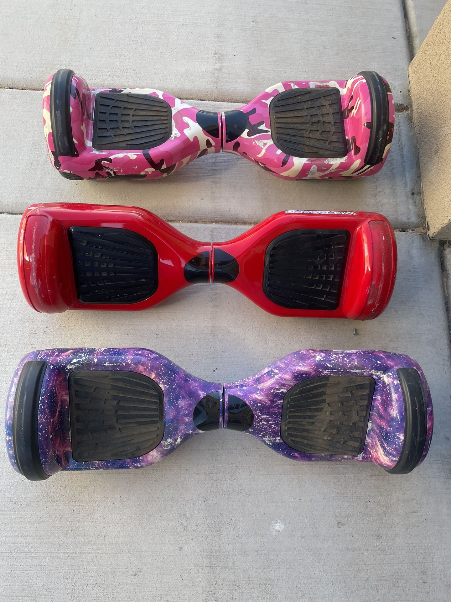 Read description Hover boards do not charge They need batteries Hover board with no seat 10$ each Hover board with seat 20$ each They have charger expect the red hover board Ty