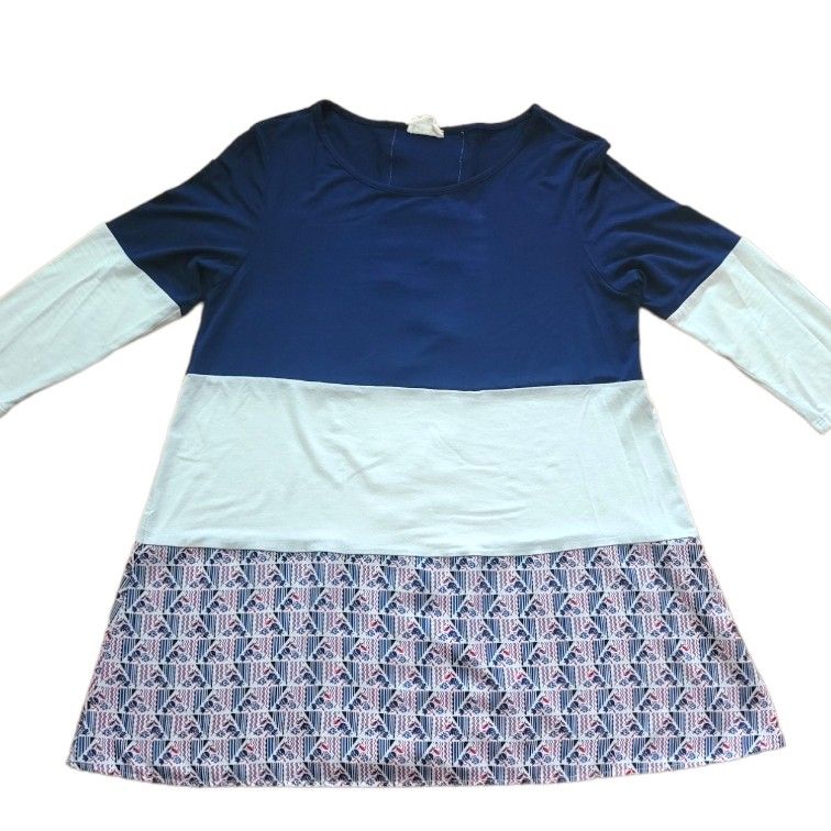 Excellent used condition Show your American Pride with this 143 Story by Line Up tunic blouse. The XL size top features a beautiful red, white, and blue floral colorblock pattern, perfect for any occasion. The scoop neckline and flowy design make it comfortable and stylish, while the lining adds a luxurious touch. Whether you're dressing up or down, this blouse is sure to make you feel confident and chic. Measures Approximately 19" pit to pit (flat) 28.5" shoulder to hem
