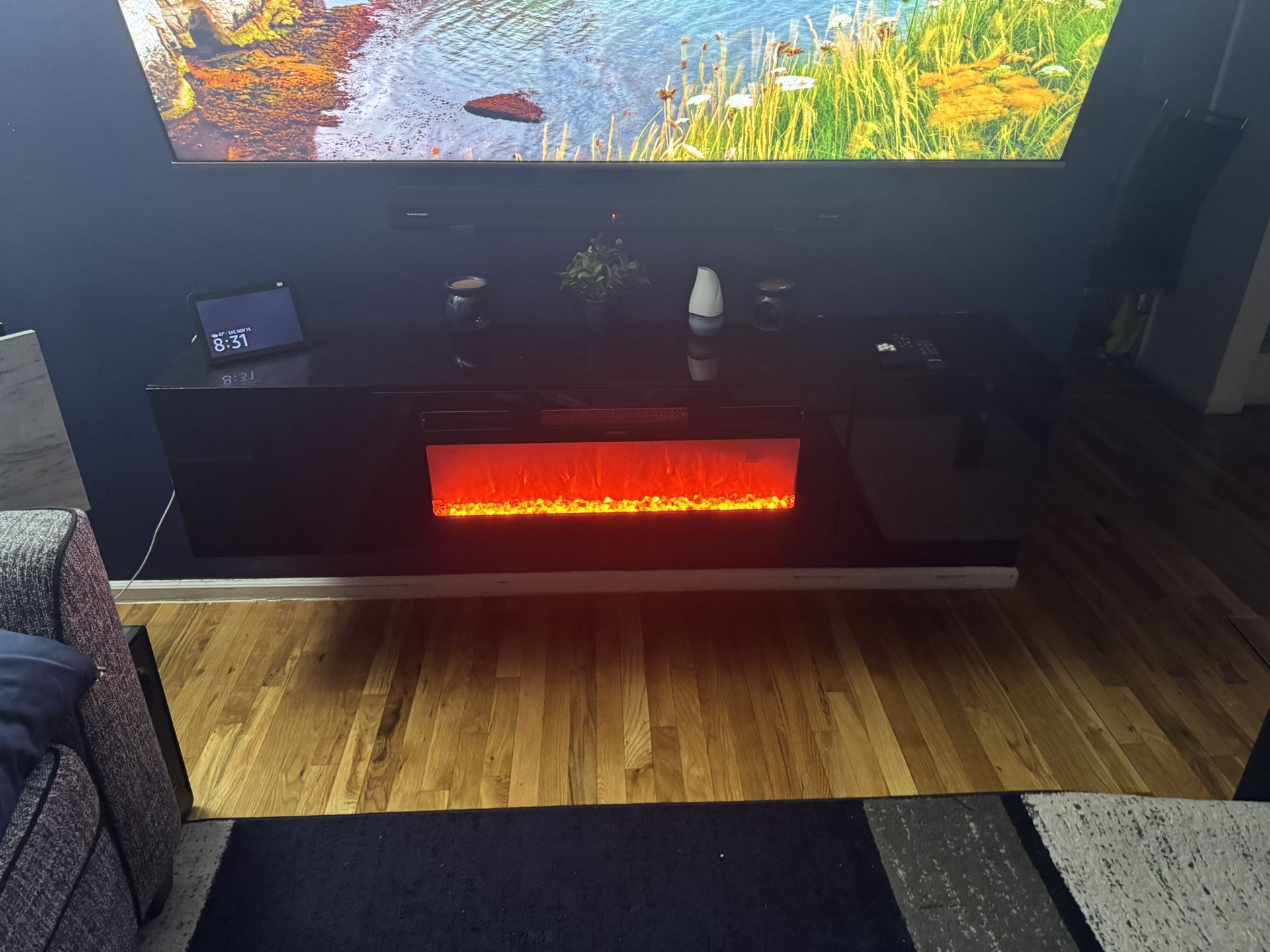 Wall-Mounted Modern LED Fireplace TV Stand – Excellent Condition