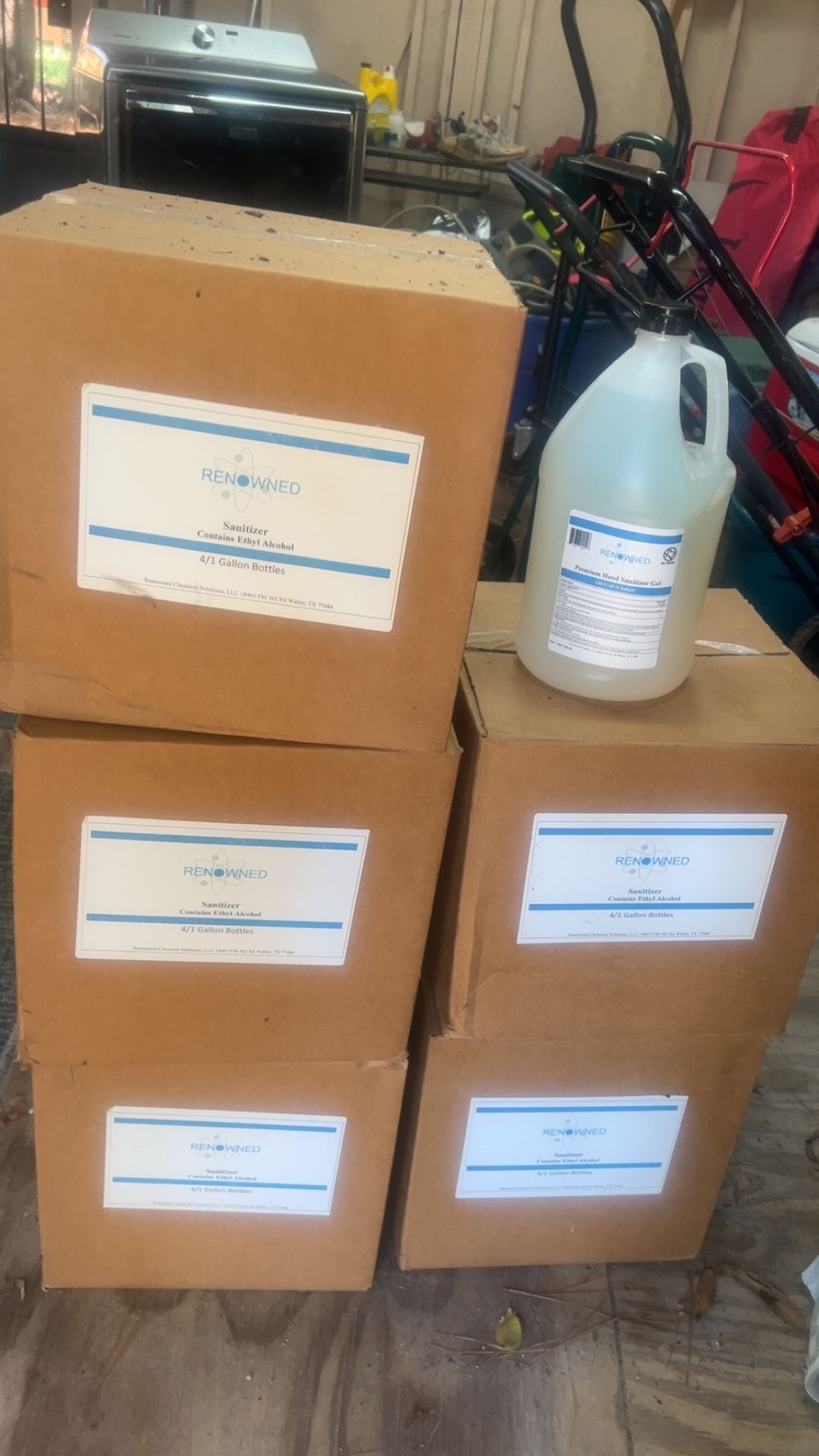 In the box gallon size sanitizers. One gallon for $25, or 5 boxes for $100