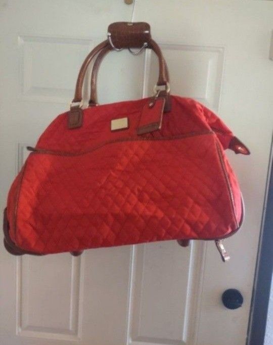 This is an original Liz Claiborne quilted travel luggage has the hideaway handle two wheels perfect for check-in when you're traveling also comes with the original Liz Claiborne padlock keys and travel tag it does have a little wear but nothing major still very very usable many miles to travel does come from a smoke-free environment