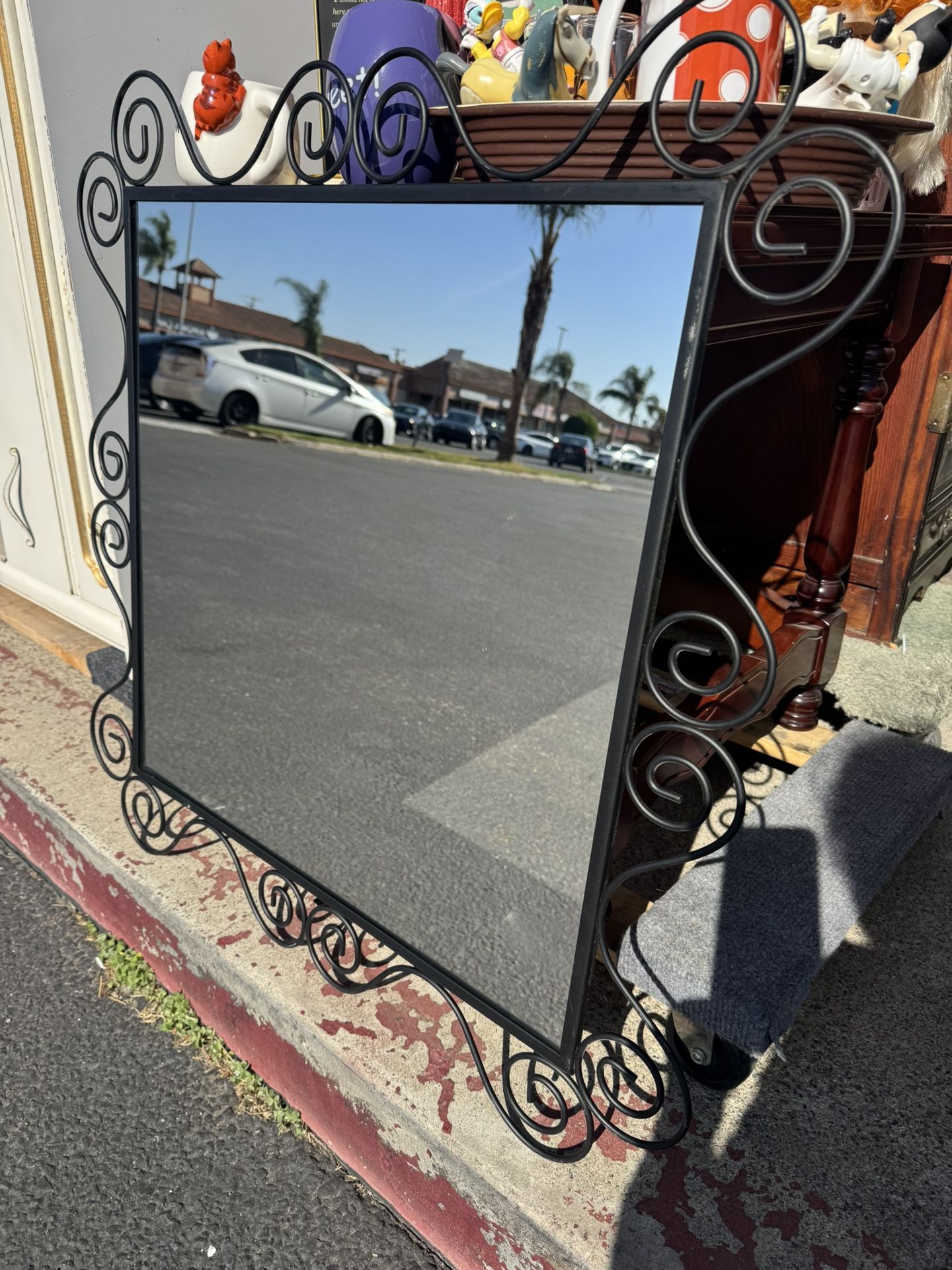 vintage IKEA Noresund black wrought iron swirl design wall mirror