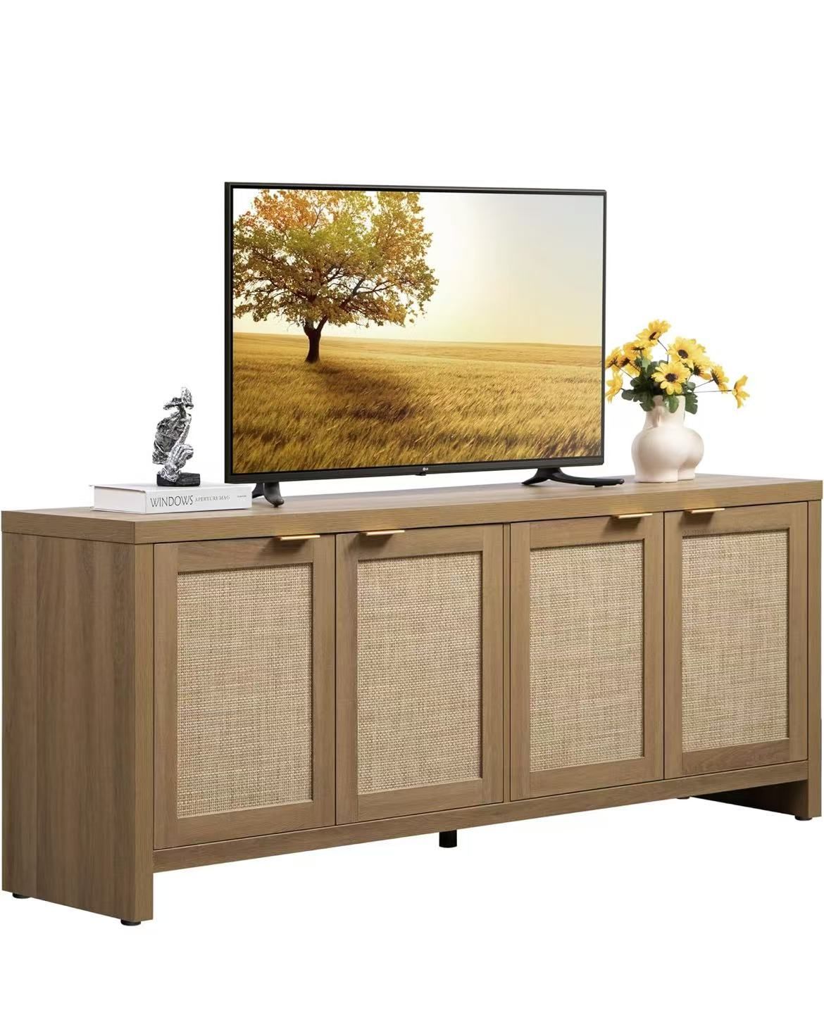 SICOTAS TV Stand for Living Room Boho Entertainment Center for Bedroom with 4 Rattan Cabinets Farmhouse Television Stands with Storage Large Media Console Table for TVs up to 65 Inch$130