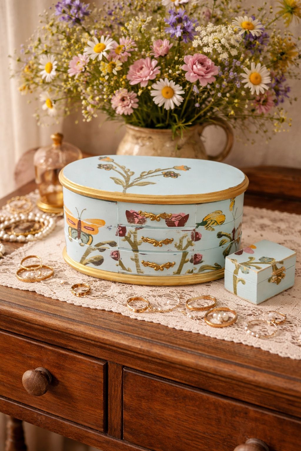 Cottagecore Folk Art Jewelry Box With Bonus Trinket Box