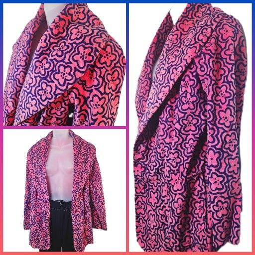 Authentic 1960s mod geometric velvet blazer in pink. Bold graphic print, excellent condition. Statement piece.