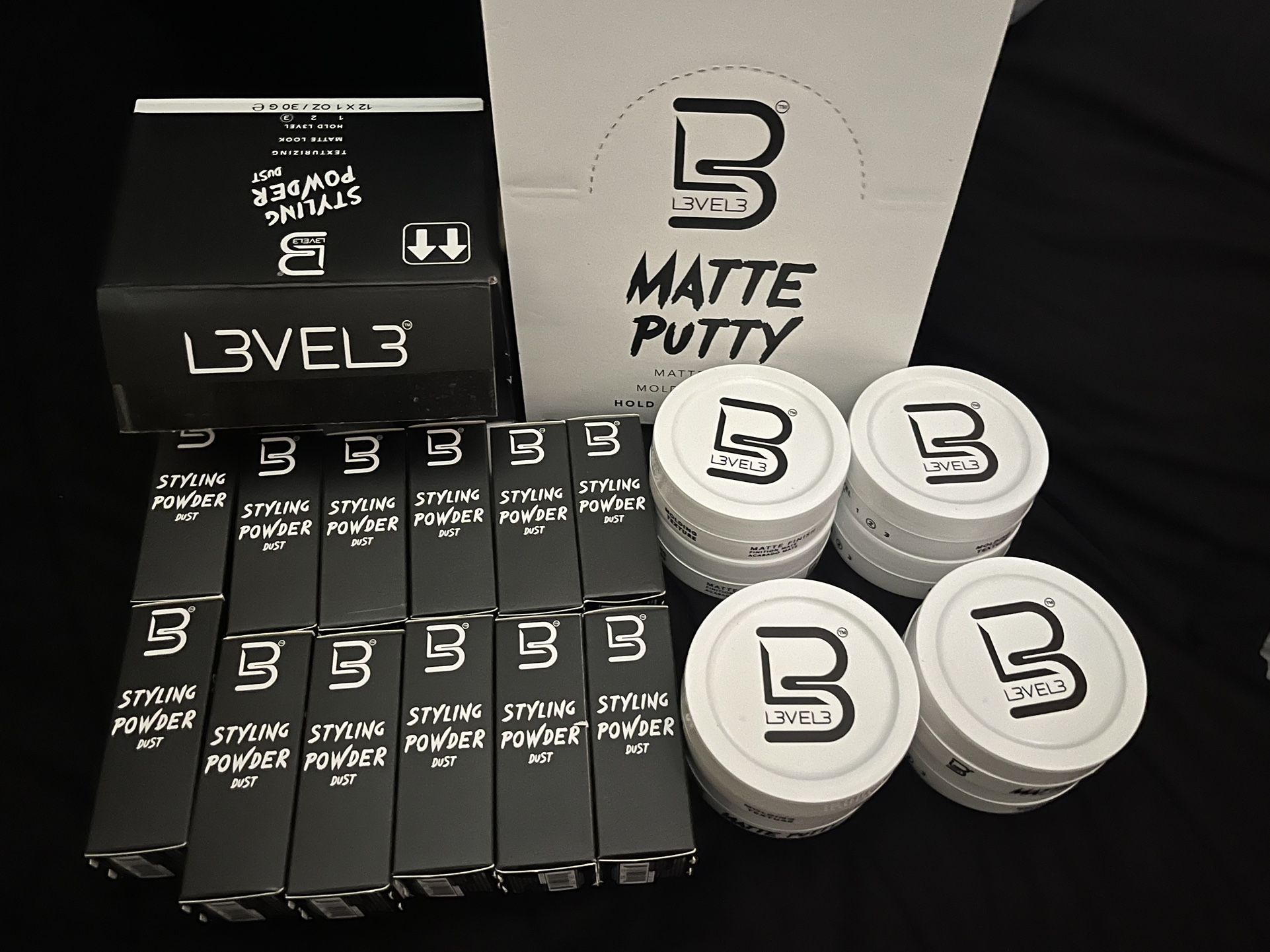 Level 3 styling powder and matte putty both are great products that smell great 🔥 if you like to have texture I use a combination of both or if you just wanna use one that’s fine also🫡 and if you got a slick back or combover the putty is really nice it’s a medium hold so it won’t get all stiff like gel does 🏆 Styling powder is $10 Matte putty is $14