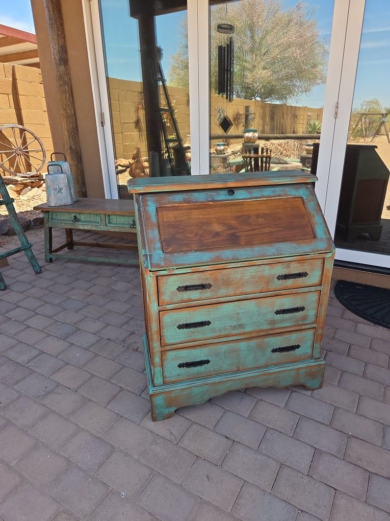 Southwest Style Desk With 3 Drawers.