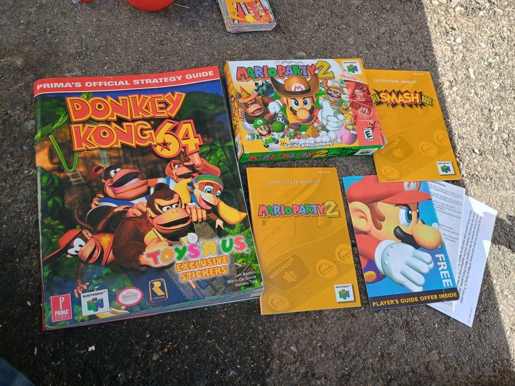 Includes dk 64 guide, Mario party 2 box and guide smash bros guide