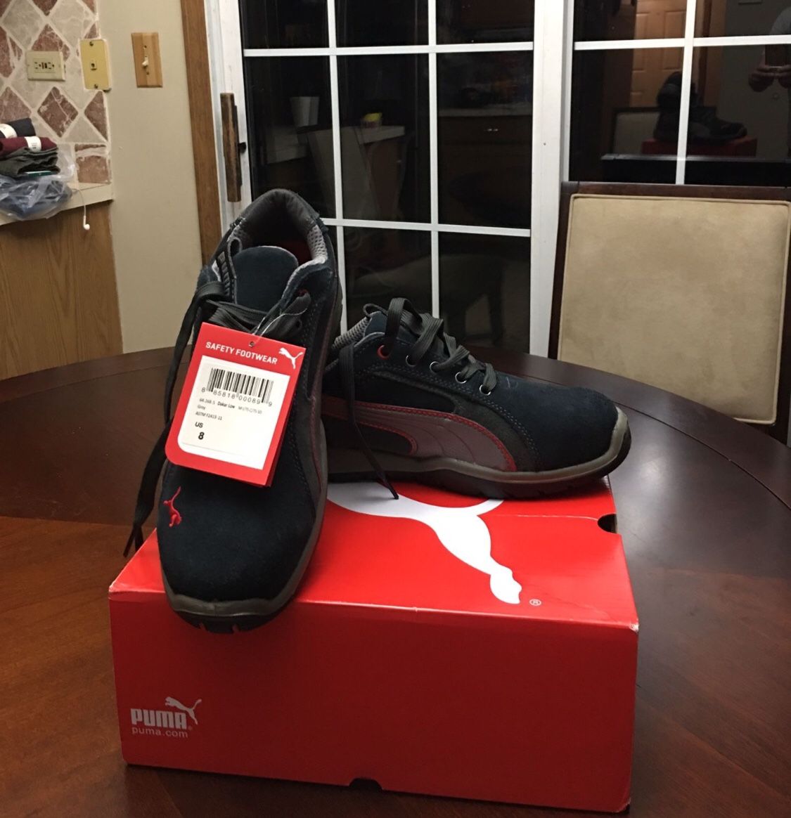 Selling Puma Steel Toe shoes. They were never used, I’m only selling because I got the wrong size and forgot to return. Original price is $120 . Open to offers. They are size 8 Men’s