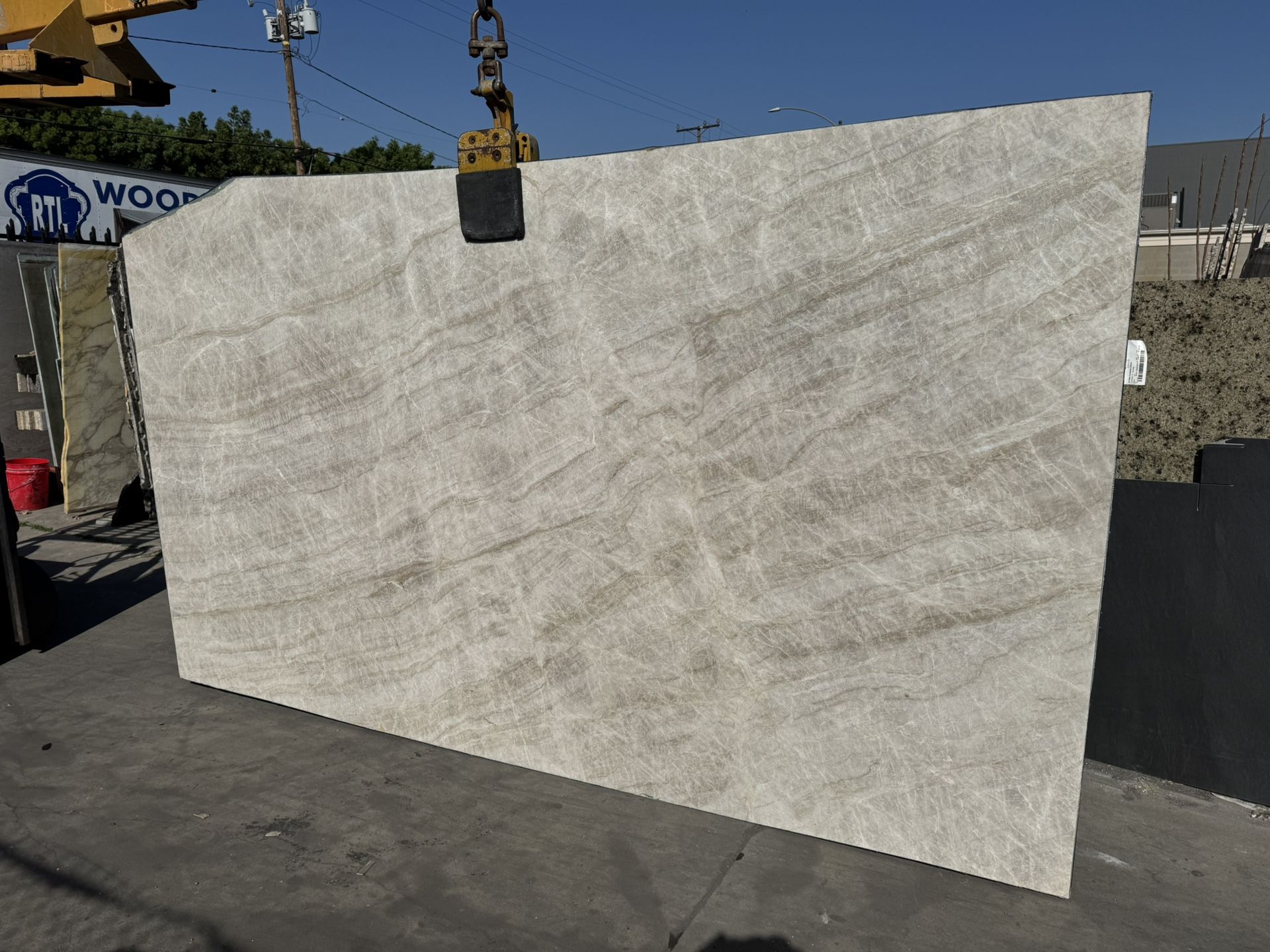 Three slabs of leathered Taj Mahal available from the same bundle. Approximate measurement: It measures 134” x 78” x 3:4”, huge slabs, we have only 3 matching slabs left. We are in Long Beach open daily from 9-4 pm and 10-2pm on Saturdays. We can deliver for a small fee.