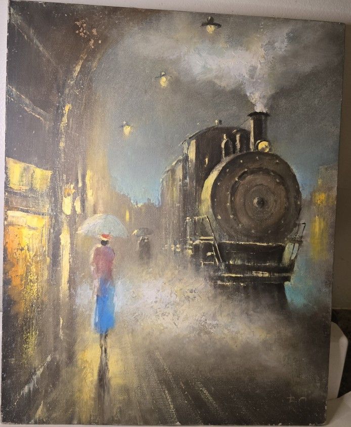 Waiting Train Oil On Canvas Painting By Victor Skachkov From Lvov Ukraine 16"x20"