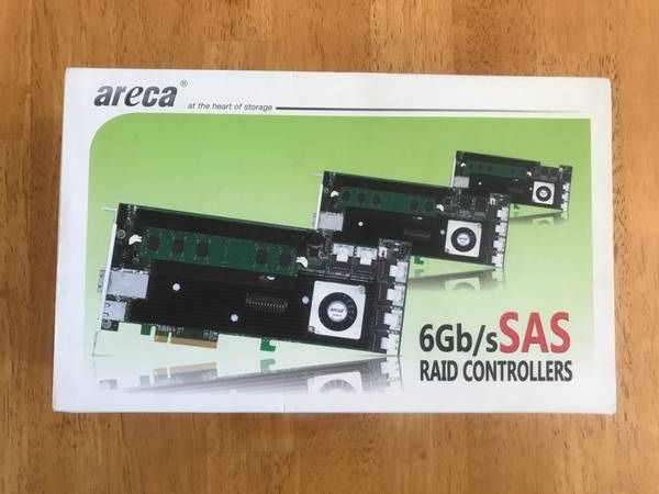 Areca 1882ix-16 1882dix-16 Disk Controller RAID Computer PC Desktop Server SAS Add many more Hard disk drives (HDD) and Solid-state drives (SSD) for your custom storage solution. This was an extra I've kept for backup purposes. Comes with box and accessories. I just upgraded the firmware and BIOS on it to the latest and confirmed it works perfect. Somebody is going to get a great deal as this cost well over a grand brand new and has no time on it at all outside of verifying function and upgrading firmware! This one has a box marked 2GB memory. 4 SAS connections on the card itself. It is good for 16 SATA hard disk drives via standard 1 SAS into 4 SATA breakout cables. Many more drives supported via an expander card too. Build yourself a home media theater server pc desktop and watch movies or store photos photographs and family videos or business. Much better to build your own NAS. Great for video editing and storing client footage too. Also for security surveillance video, NVR, drone, photography, videography, content creation, home theater pc, etc. No better way to immediately add 16 additional hard drives to your system and even more through an expander while allowing many reliable hardware based RAID solutions to protect against data loss. Priced at under half the new retail cost. $500 cash. I will only conduct transactions in the local police department parking lot visitor parking and internet exchange area by the front entrance.