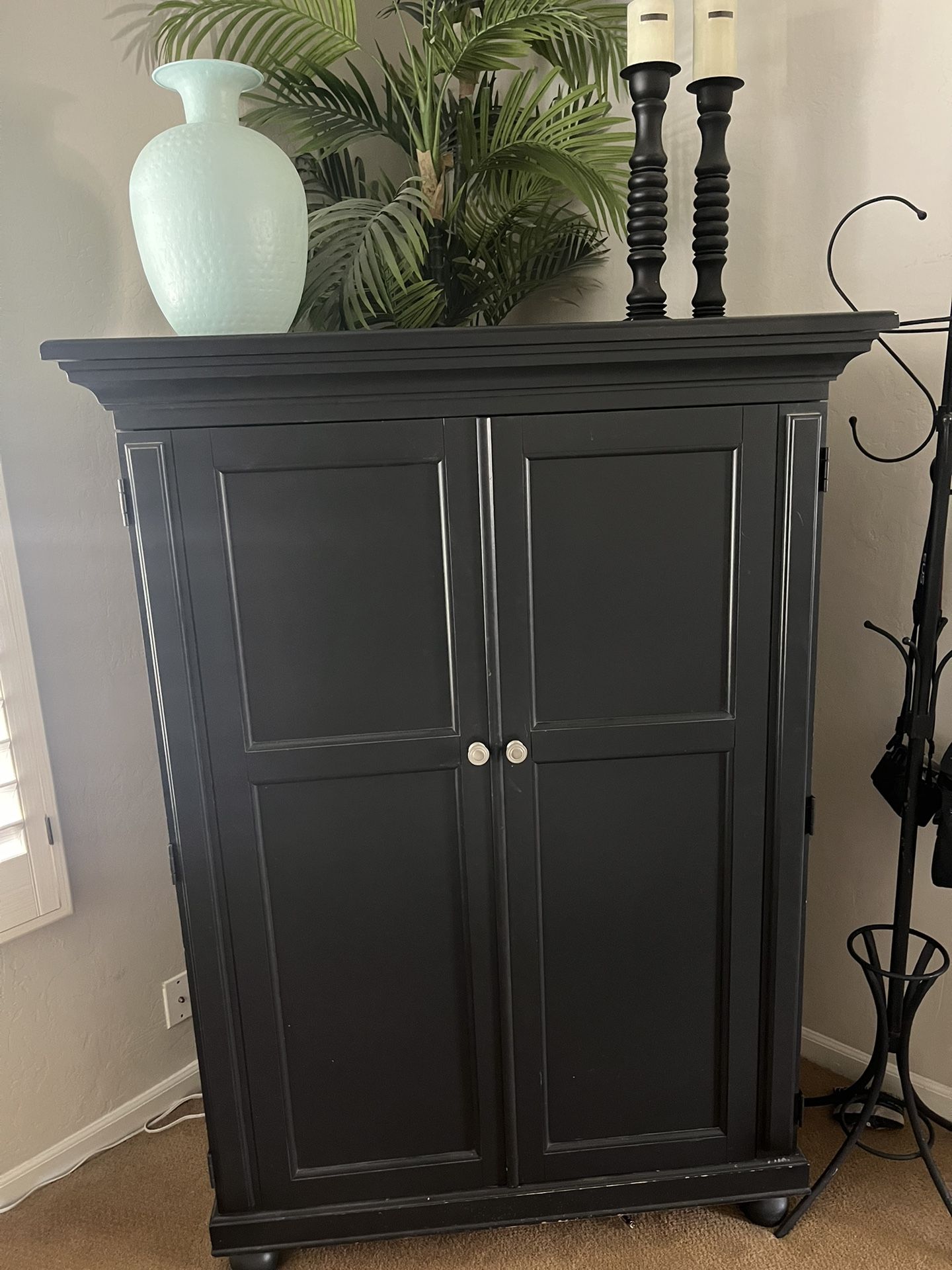 Cabinet with pull out writing desk. 44.5”w x 24.5” d x 61.5”h