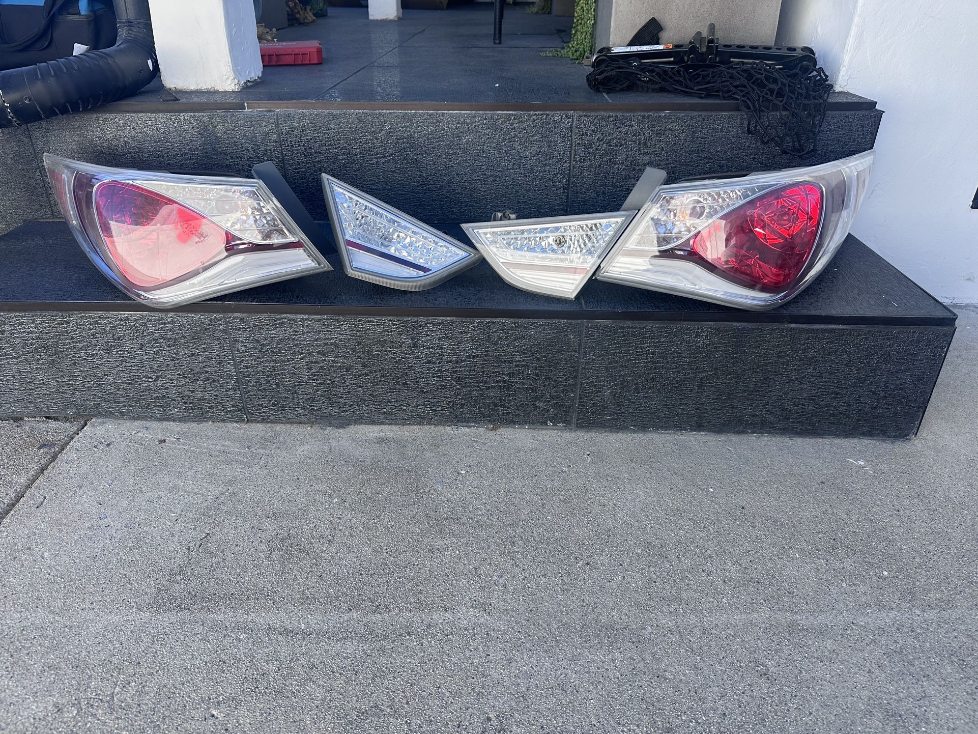 The tail lights are from 2012 Hyundai Sonata, hybrid In great shape, passenger side tail light has a piece cut out, but it works fine and no foggy selling Asa set