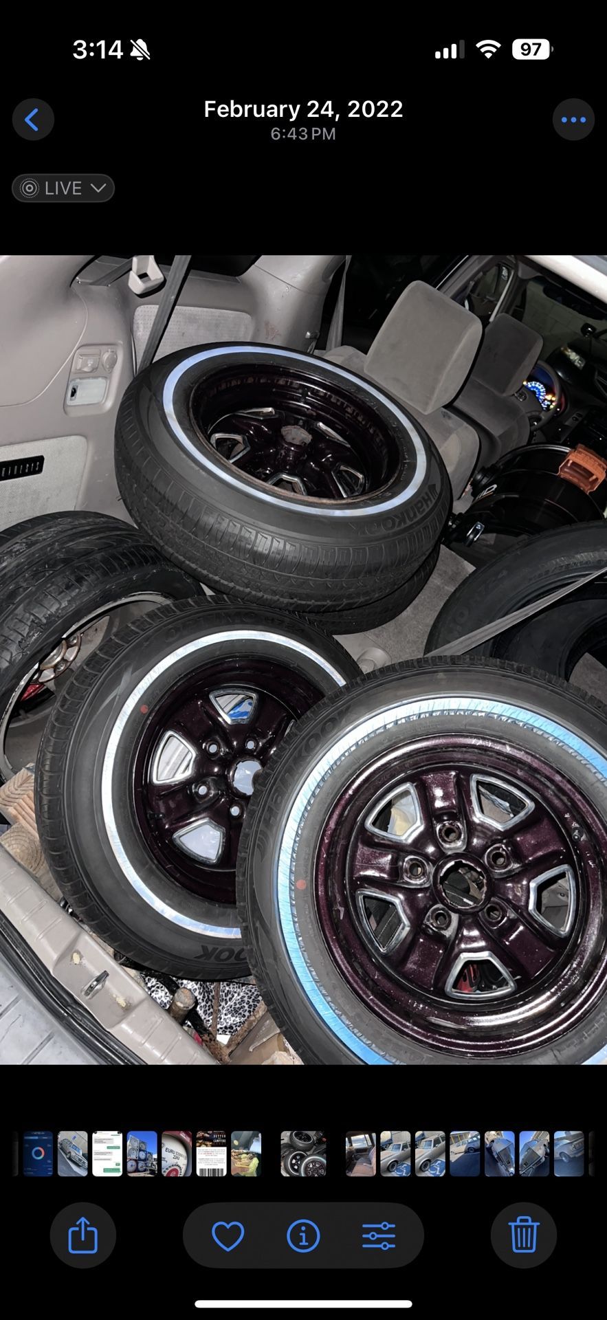 Rims have been in a shed for a while so there dusty need to be washed but this is how they looked. New tires just dirty aswell