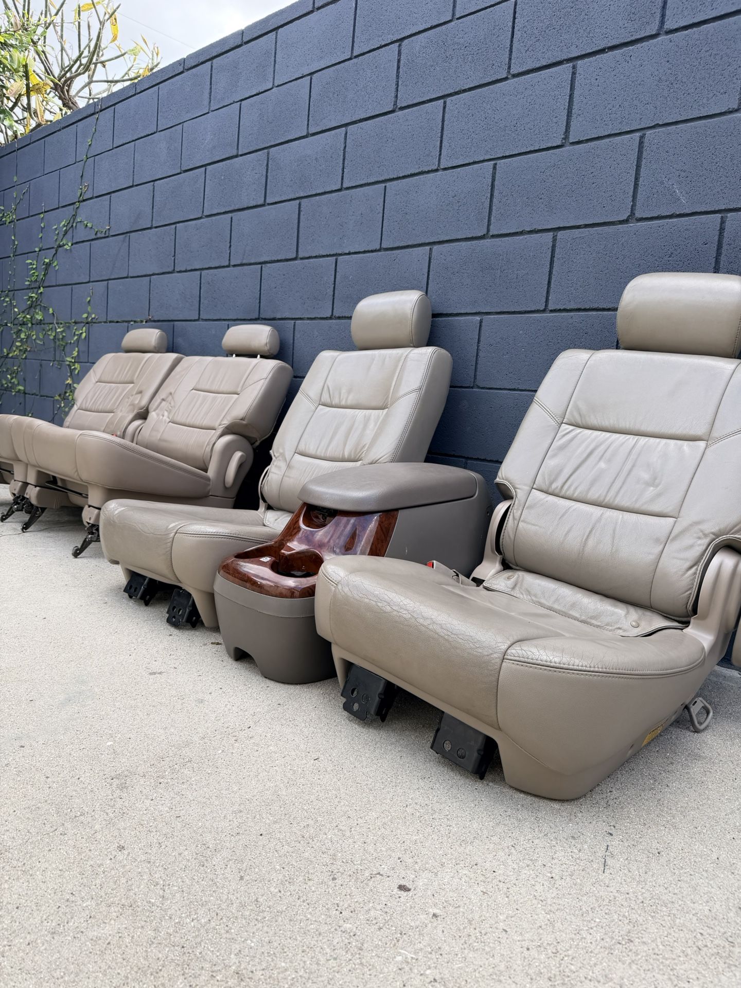 FOR SALE: 2001-2007 Toyota Sequoia leather OEM seats. SPECS: 1. Middle row captains chairs 2. Armrest console 3. Third row Color is Beige/Tan CONDITION: Middlle row captains chairs are in good condition. There are signs of wear on the bottom cushions but not tears or holes. Third row is like new. Leather is in excellent shape. SHIPPING: Local delivery available in the LA area for additional cost. PAYMENT: Cash, Venmo, Zelle, PayPal