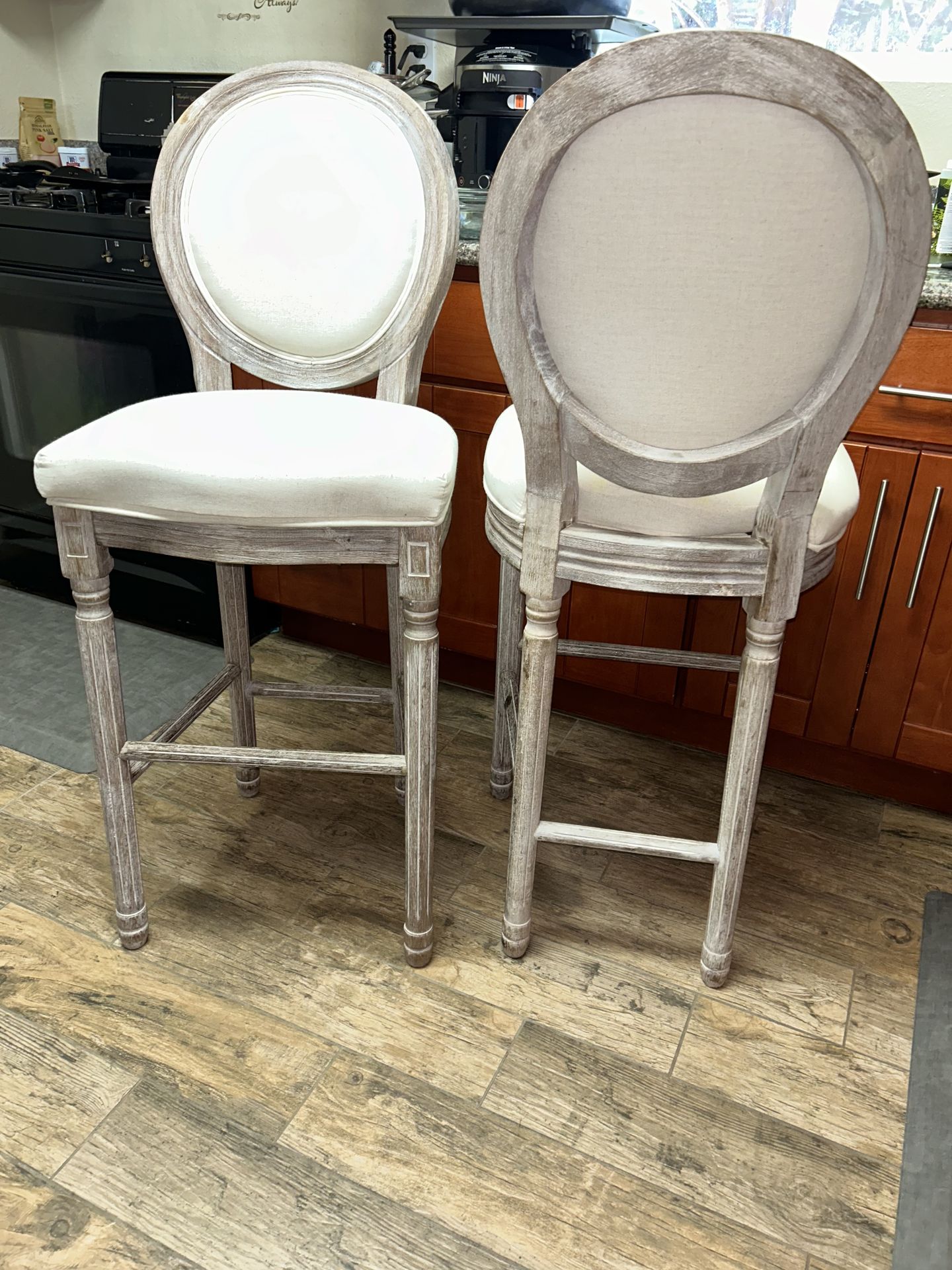 Very nice chairs the legs are 24 inches tall and from the floor to cushion is about 30 inches $40 dollars each