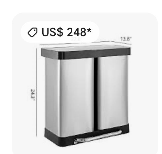 LAZY BUDDY 60 Liter / 16 Gallon Dual Trash Can, Stainless Steel Kitchen Garbage Can with Plastic Inn