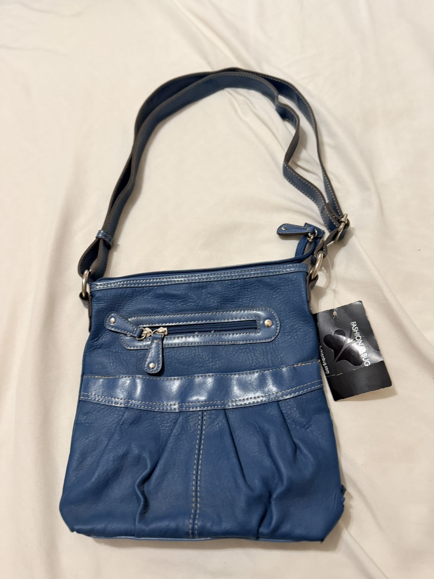 NWT. Elevate your style with this chic blue crossbody bag. Perfect for everyday use, it combines fashion and functionality. Very clean. Never used. Please last 2 picture for the flaws.