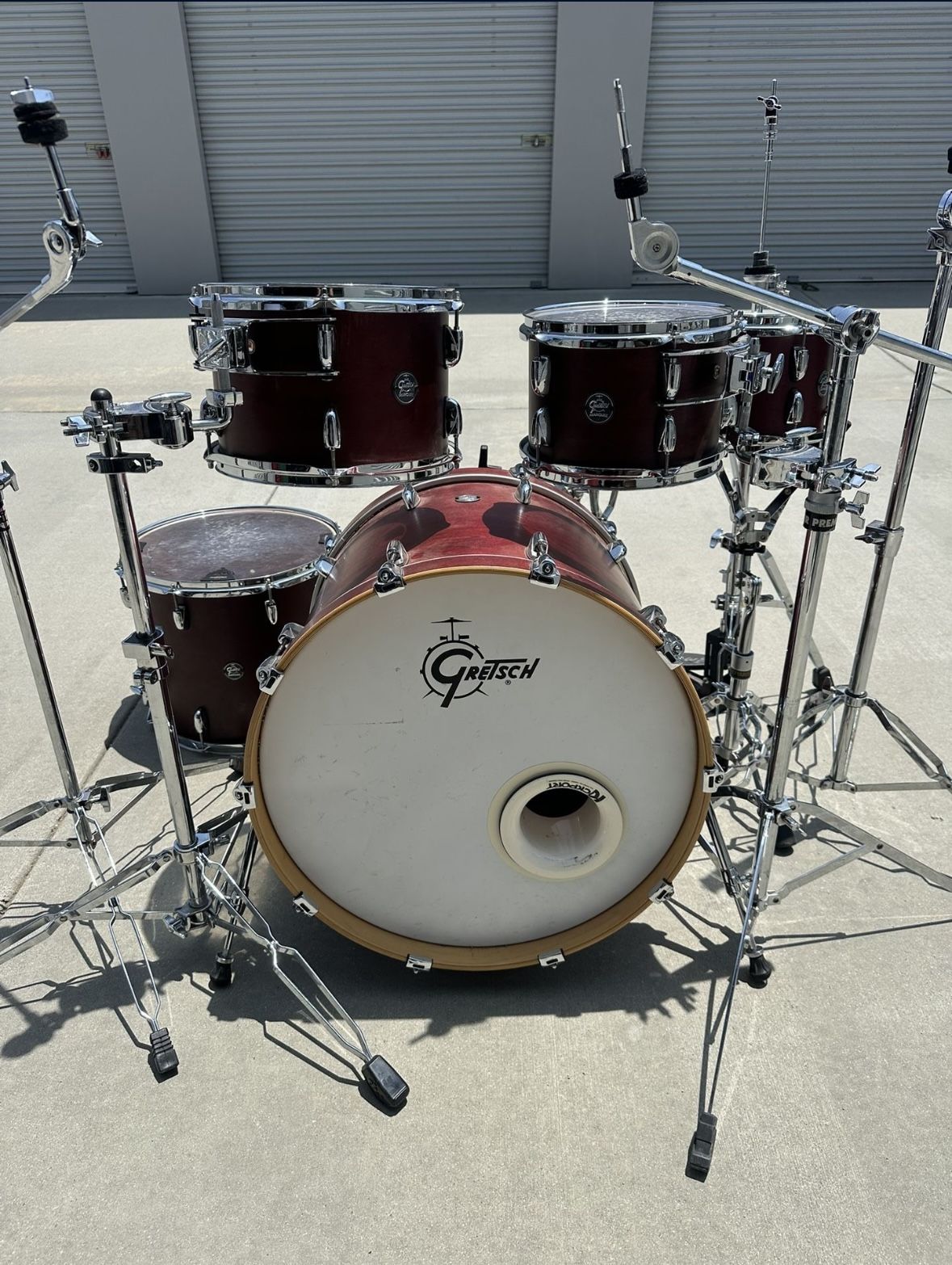 Up for sale is my lightly used Gretsch Marquee set. I’m selling the whole kit including all the hardware. Here’s what you get. •22” Kick •16” floor Tom •8” 10” 12” rack Tom’s •Matching snare •DW 3000 series Hi hat stand •2 snare stands •2 cymbals stands (Hardware is a mix of Yamaha, gretsch and DW) •Travel gig bags to protect everything. Not photographed is the snare. (I did not have it with me at the time I took these photos.) it is a matching snare and in great condition just like these shells. This is a great kit and very universal for many types of drummers.