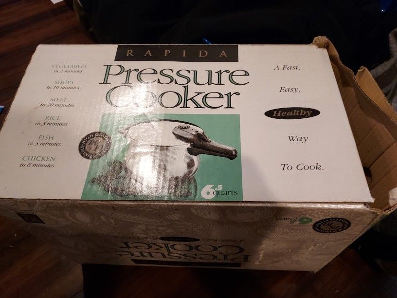 Im Selling a Rapida Pressure Cooker. Pressure cookers are a Fast , easy, and healthy way to cook. This one is in Like new condition, comes with everything, including the box and the instructions/ paper work from manufacturer. This is a great quality cooker , with excellent reviews online at sites such as Amazon. Asking only $25, an excellent addition to your kitchen or someone you loves kitchen. Makes a great gift for the holidays as well! Perfect for the person who loves to cook and has an interest in culinary. Fully Cook delicious vegetables, soups , meats , rice, fish, and chicken , all in between 3-10 minutes! Thanks for your interest! Key words Home mom mother family cook cocinar kitchen cooking Mediterranean dish serve garden pasta Italian pressure cooking fast easy bake grill burger professional Fiesta party parties tailgate game stay at home mom culinary arts festive holidays gathering Familia cheap garage sale sell baby moving recipe desserts rice chicken sausage veal beef lamb duck fresh a LA carte Mexican restaurant