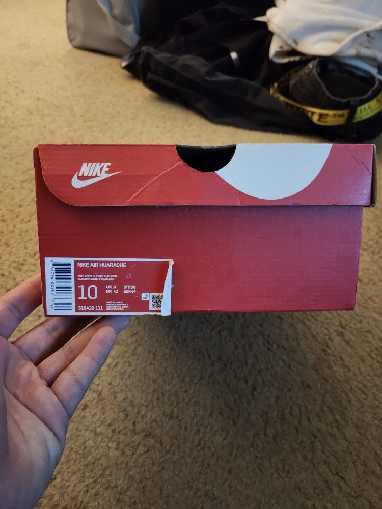 All white nike huarache Size 10 mens Like new Amazing and comfortable pair of shoes Don't fit anymore Asking $65 or best offer