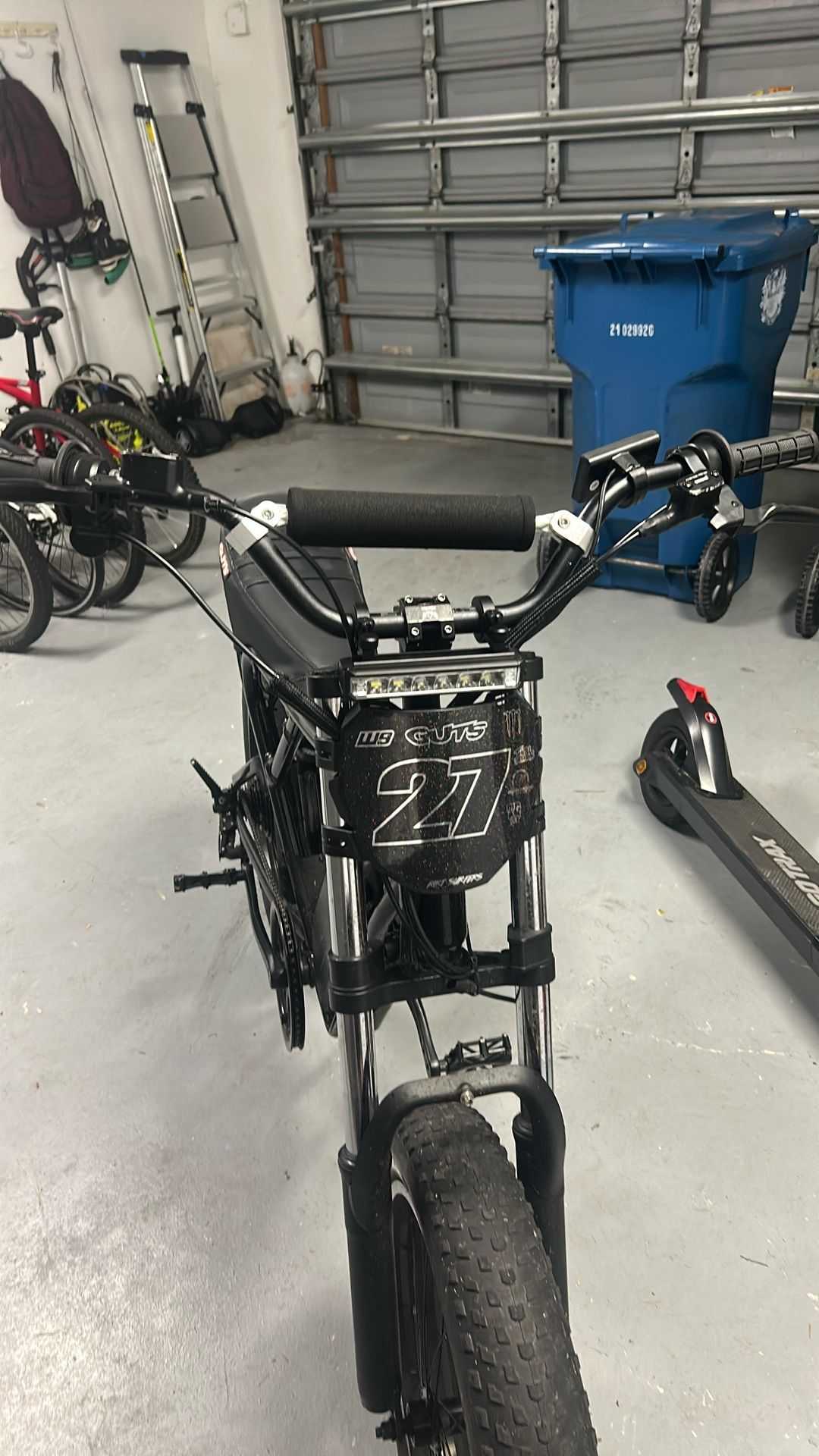 RidstarQ20 1500W 48V Mod: Guts seat cover-90 Pedals-10 Display-35 Full throttle-30 Pit bike bars-35 Stem-10 ODI grips-10 Back and front brake swap ODI plate-20 ODI plate sticker-40 Bar light with charger-35 Bike has 400 miles can go up to 34 mph comes with charger and is in pretty good condition it’s only missing the cable for the light so if you want to swap the light you need to get a light that is chargeable or battery powered. Has very good range I ACCEPT TRADE OR CASH IF YOU HAVE A TRADE OFFER DO NOT BE SCARED TO CONTACT.