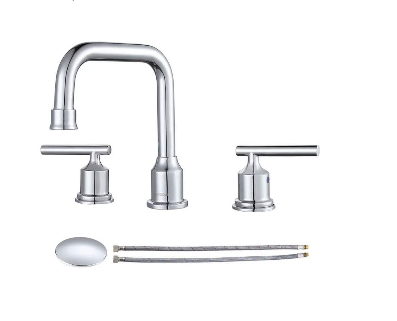 Widespread Bathroom Faucet Chrome 8 inch Bathroom Sink Faucet Adjustable 3 Pieces Basin Faucets 360° Swivel Spout Modern Lavatory Faucet Vanity Faucets Water Supply Lines Quick Install Pipe #374