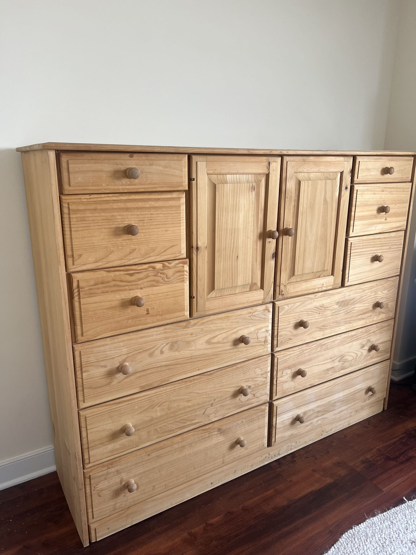 Dresser with drawers large used dor additional panty solid wood pine construction