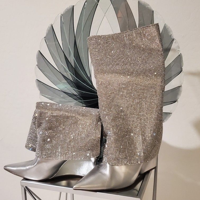 Steve Madden Sparkle Rhinestones Boots, Size 11