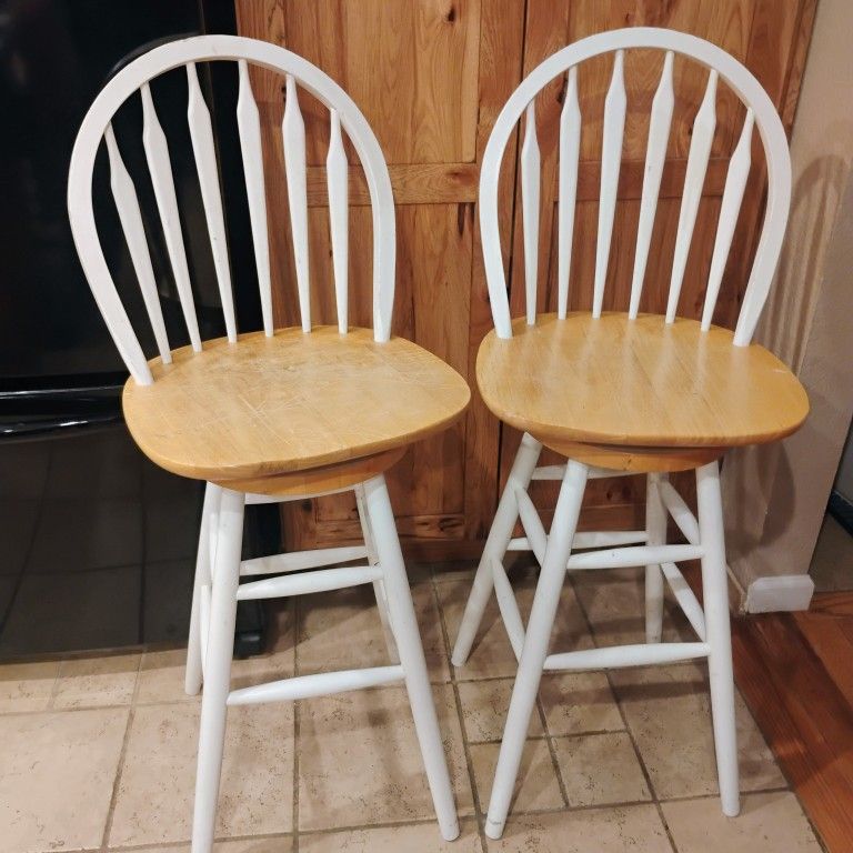 Set of dining chairs pre-owned Attention! The chairs have scratches and some of the paint is chipped in some areas. Once you had some deep scratches in the seat. See photos Floor to seat 30" Height 45.5' Seat across 17 5/8" sillas de comedor