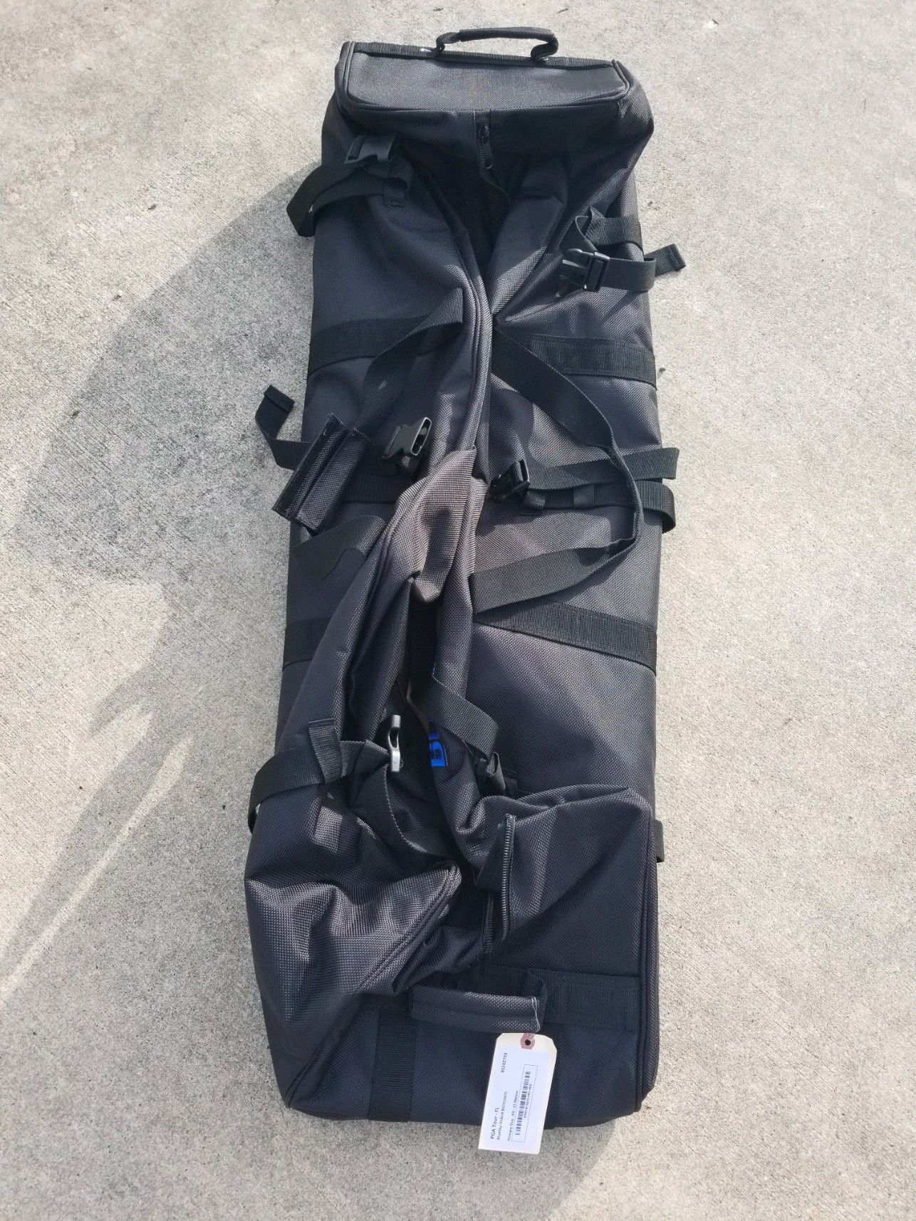 Very good condition heavy duty, WHEELED storage bag. Black canvas material - zippered with handle. Has hard bottom. Have 2 exactly alike. Price is for ONE. Size is approximately 52”.