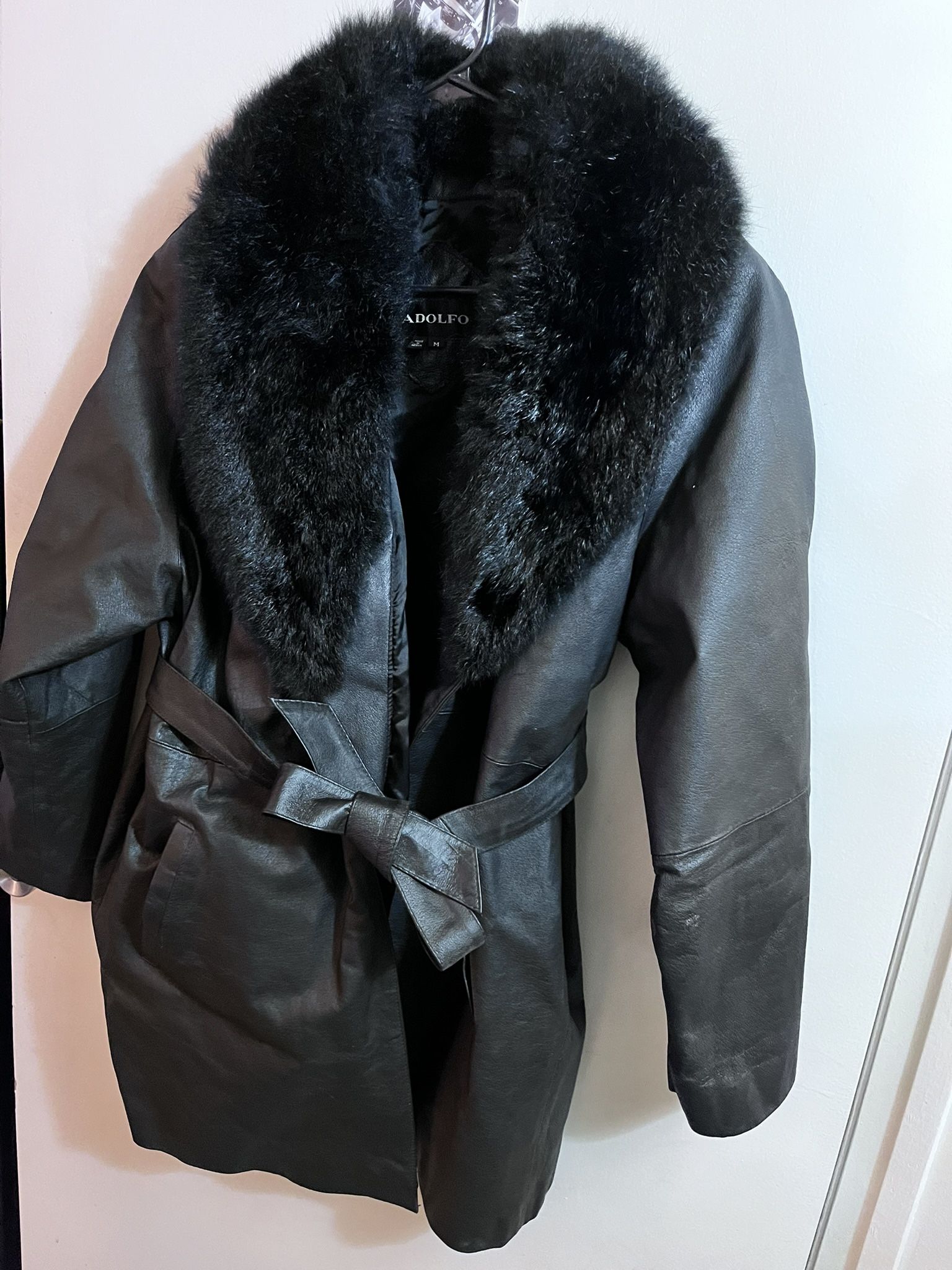 * Adolfo Leather Jacket * Genuine leather faux fur along the neck and inseem ! The rest of the jacket is genuine leather ! $60 O.B.O