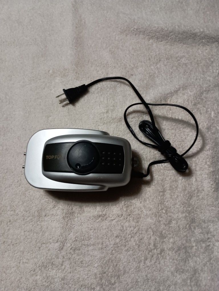Top Fin Air 4000 Aquarium Air Pump in good condition. It is designed for aquariums up to 80 gallons. The pump features dual air outlets. It has an energy efficient motor and quiet operation. The air flow is adjustable. There are normal surface scratches/scuffs, but does not impede the functionality.