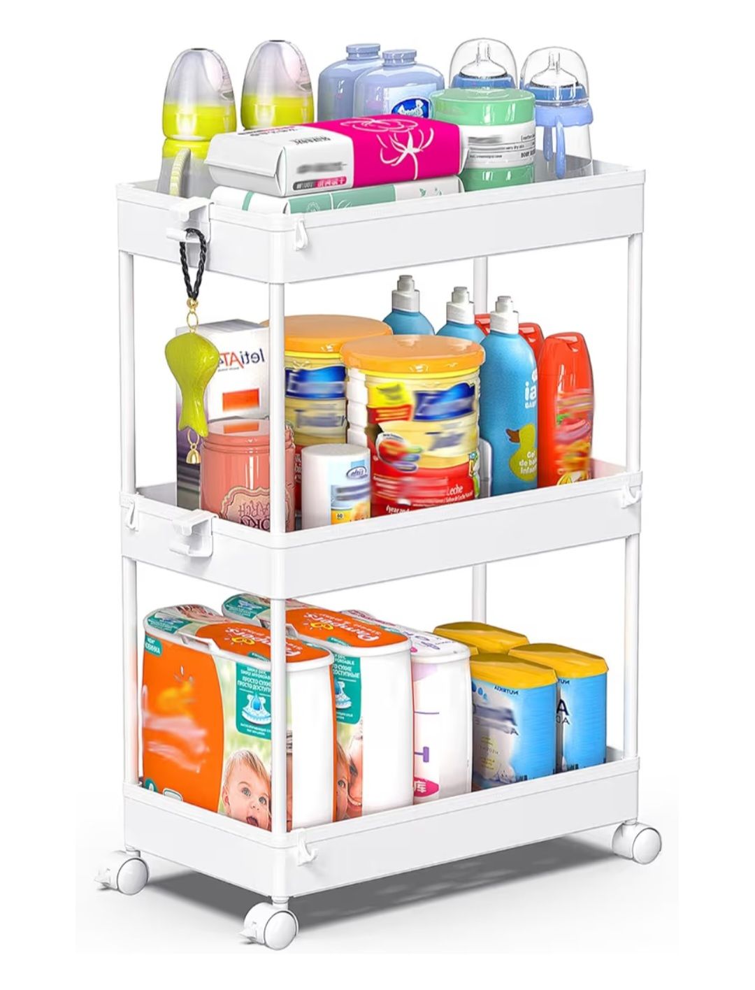 Storage Rolling Cart, 3 Tier Laundry Room Organization Utility Cart Bathroom Organizer Mobile Shelving Unit Shelves Multi-Functional Trolley, White
