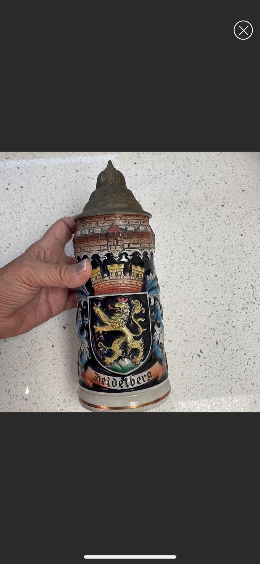 9” Vintahe Ceramic Beer stein from Germany Purchased there but never used Print on bottom says “West Germany”