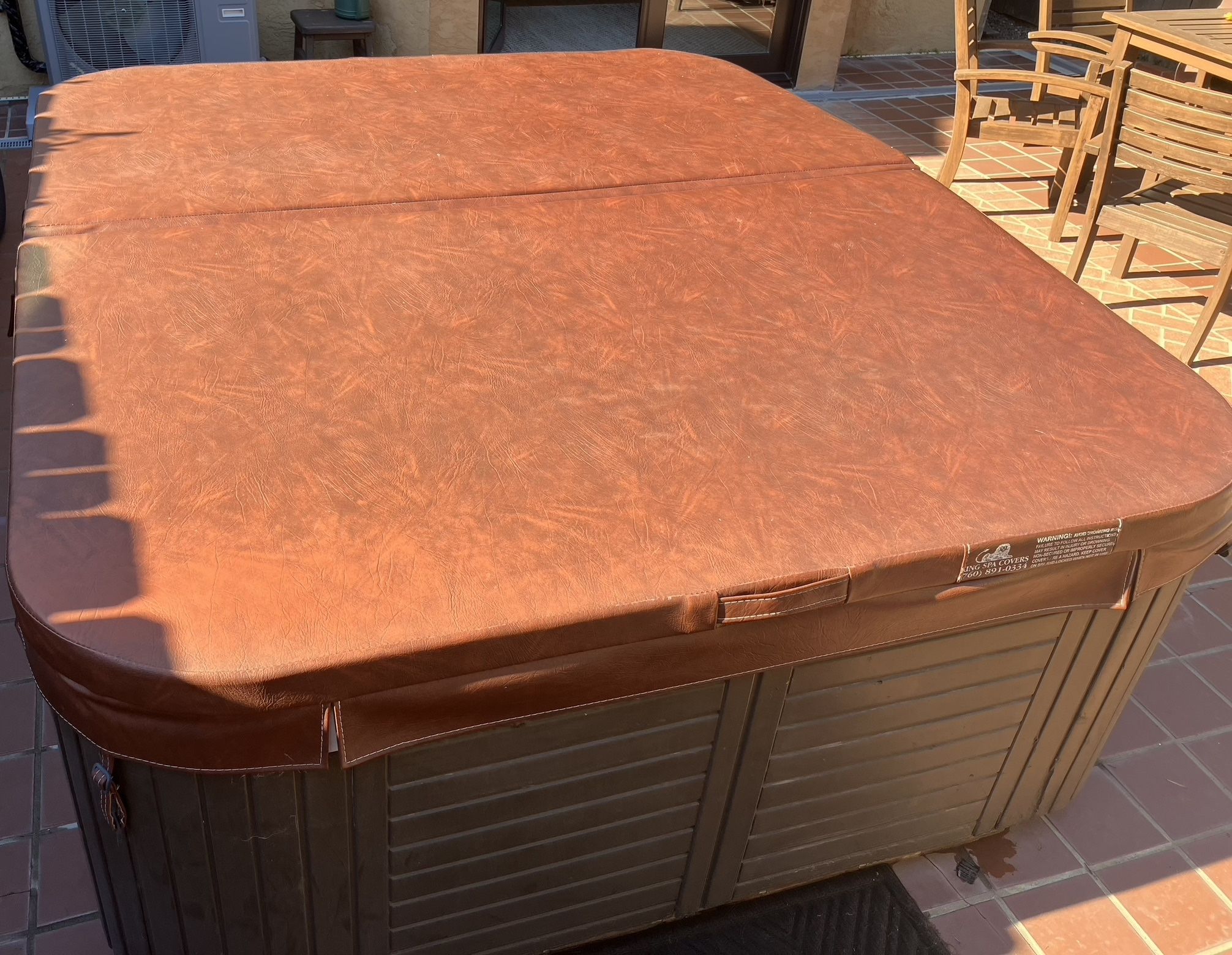 Redwood Jacuzzi cover purchased for Hot Springs "Sovereign" model I. Size: 76" x 91" W/12" RAD Great condition. Like new!