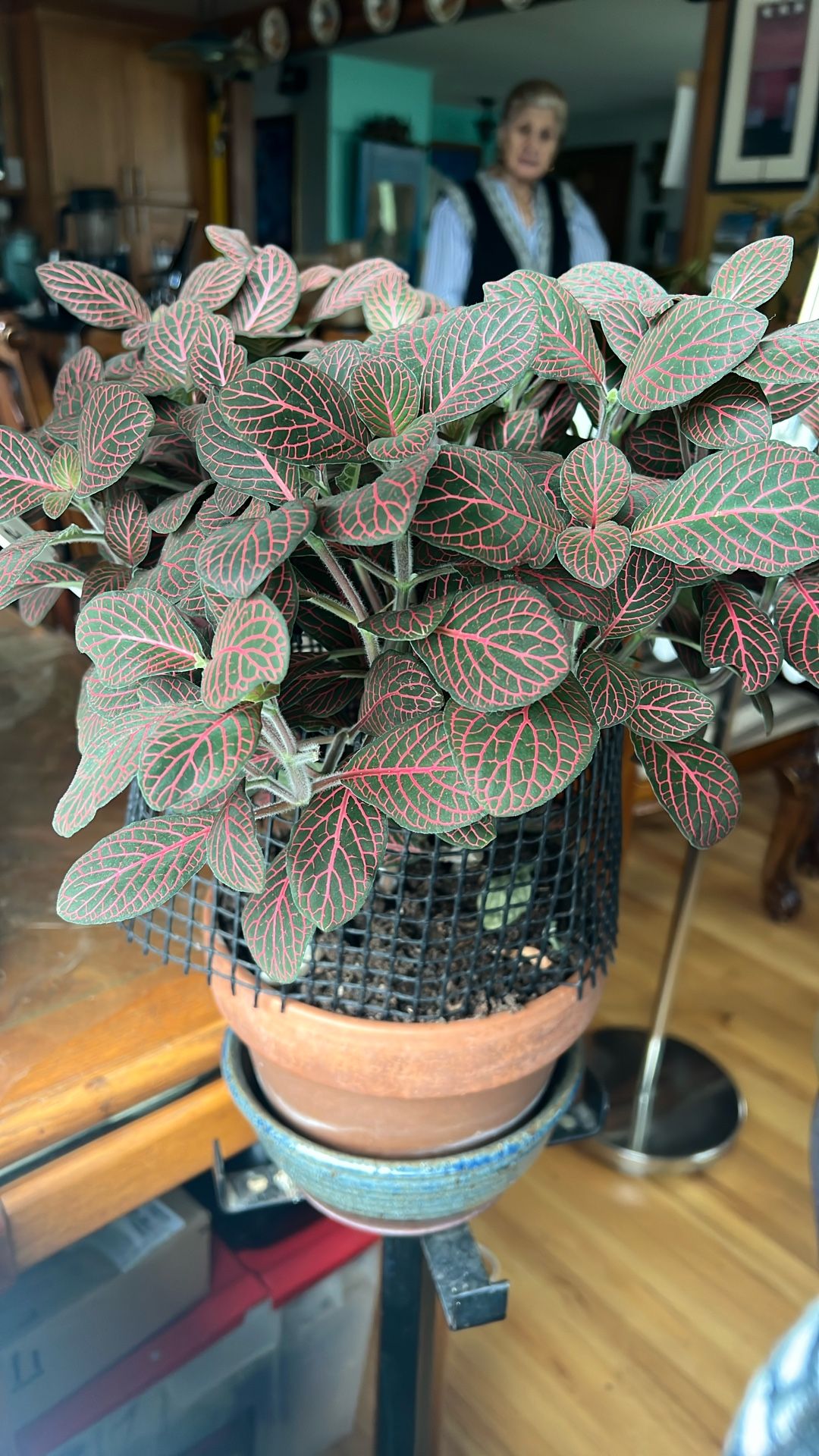 Live potted plant, beautiful, healthy, known as nerve plant, mosaic, plant, silver threads, silver Fittonia. Indoor plant. Water once a week. Easy to take care of. Non-toxic for pets and humans. Partial sun. Pick up in Beacon Hill Seattle