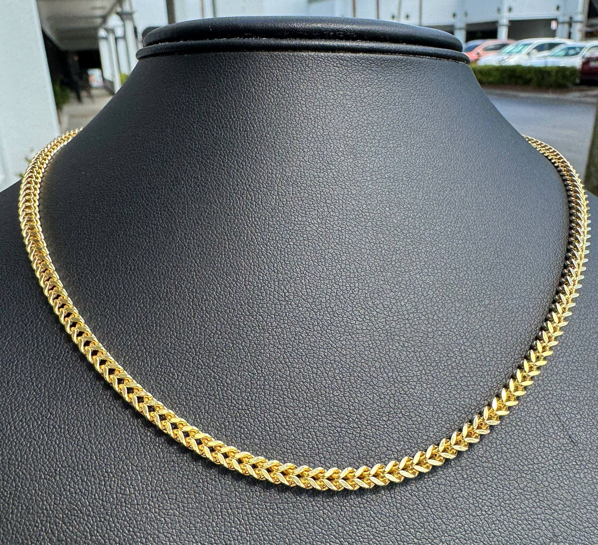 This gorgeous chain is made of 10k solid yellow gold with lobster lock. Style of chain: Franco. Size: 20.50 inches length and 3.50mm width. Total weight: 11.60gramsβ¨. Condition: brand new. Beautiful and stylish. Popular design. The best choice for you! Perfect gift! β€οΈππ We buy Rolex and Audemars, patek . Do layaway in VIP PAWN Coral Springs π₯ππΈ