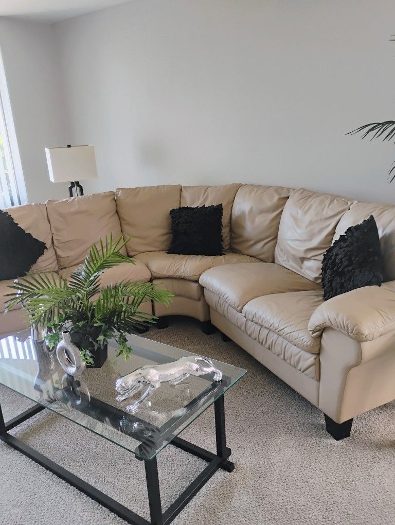 Leather Tan Comfy Sectional Couch/ Very Good Condition
